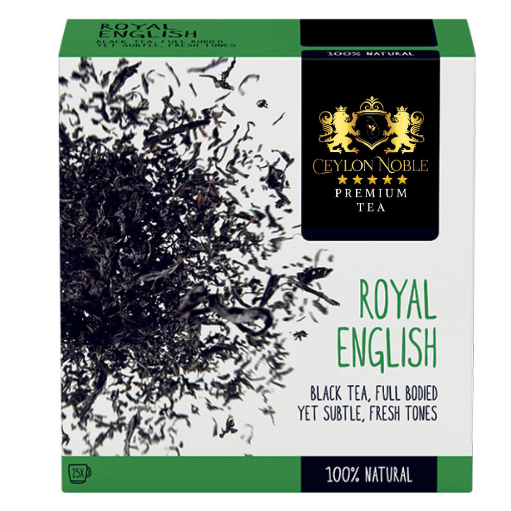 Herbata Royal English to klasyczna czarna herbata o pełnym, subtelnym i świeżym smaku, która doskonale sprawdzi się o każdej porze dnia. Liście herbaty są pakowane osobno w przezroczyste saszetki, co pozwala uwolnić intensywny aromat i głęboki kolor naparu.